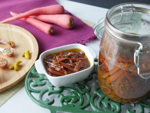 In dry & clean jar,carrot achar,cover tightly and shake well & keep it on counter for 2-3 days (warm place).
