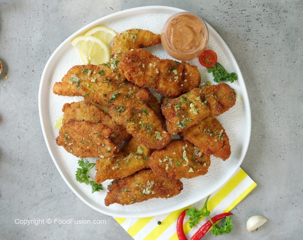 Everyone loves chicken tenders but this recipe takes it one step further with a touch of garlic butter. #happycookingtoyou #Foodfusion #nurpurbutter