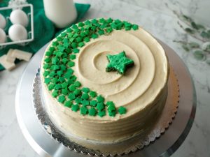 Decorate the cake with star sprinkles and cake crumbles.