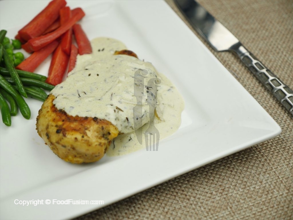Tarragon sauce ko grilled chicken per dal ker serve karein.