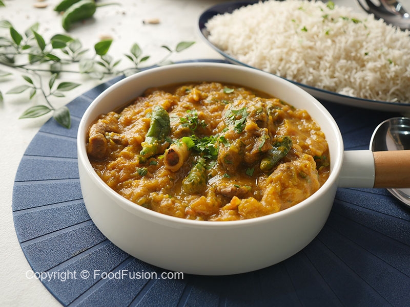 Pani dal ker ache tarhan mix karein aur ubal anay ka bad tamatar naram ho janay tak paka lein (3-4 minutes),dhak dein aur halki ancch per gosht gul janay tak paka lein (40-45 minutes).