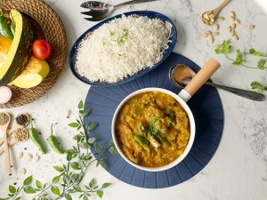 Add fresh coriander & serve with rice.