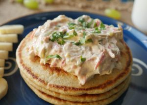 Serve oats pancakes with yogurt & vegetable sauce and garnish with fresh coriander!