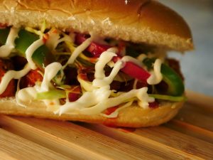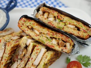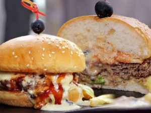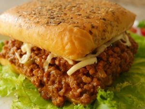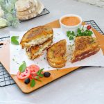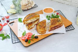 -Ek bread slice per cheddar cheese slices,mozzarella cheese,tayyar beef filling aur mozzarella cheese dal ker dosra bread slice rakh dein.