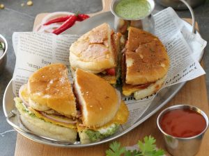 -On a frying pan,place sandwich,cover & grill on low flame from both sides until golden & crispy (makes 3-4 sandwiches).