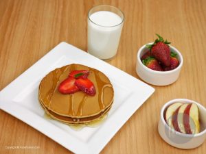 Using non-stick frying pan,pour ¼ cup of batter for each pancake.