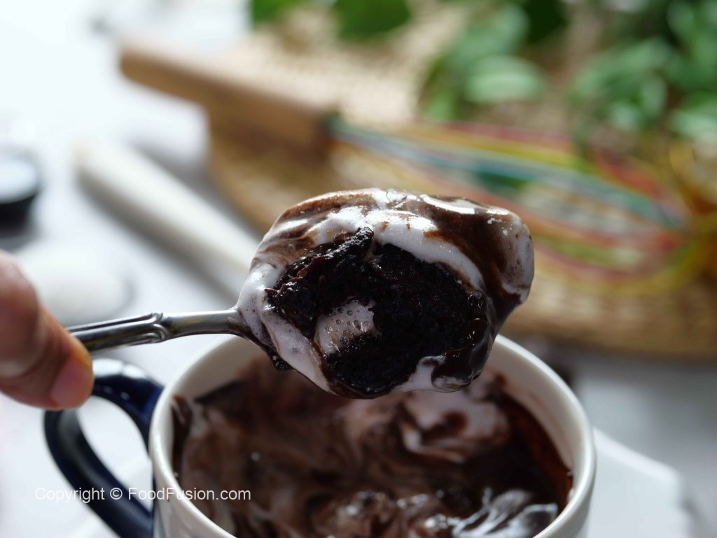 A chocolate lover’s dream in a mug! Quick to make, delicious to enjoy, and perfect for winter nights. #happycookingtoyou #foodfusion #araywahh #winter #mugcakerecipe #hotchocolate