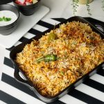 Add fried onion,boiled rice,fried onion,fresh coriander,mint leaves,green chilli,orange food color,kewra water and ghee,cover & steam cook on low flame for 8-10 minutes.