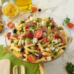 -Add Mario’s penne macaroni,fusilli macaroni,shell macaroni,mix well & boil for 5-7 minutes then strain & rinse with tap water & set aside.