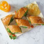 -Oregano bread ko beech se horizontally cut karein.