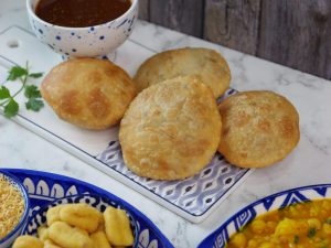-On serving dish,break kachoris,add prepared tarkari,yogurt,chaat masala,green chutney,imli ki meethi chutney,onion,red chilli crushed,nimco sev,fresh coriander & serve!