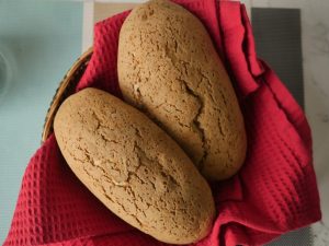 Kali kishmish dal ker rolling pin ki madad sa slightly press ker lein aur dough ko roll ker ka edges ko press ker ka seal ker lein (makes 3 & 210g each).