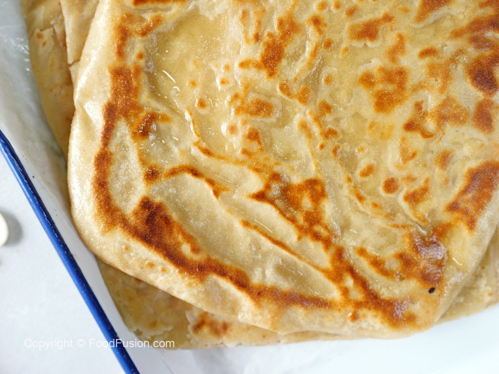 -On heated griddle,place paratha,add clarified butter & cook on medium flame from both sides until done.