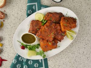 -Bowl mein fish fillets,tayyar Lahori fish spice mix,lehsan paste aur lemon juice dal ker evenly coat ker lein aur dhak ker 30 minutes kliya marinate ker lein.