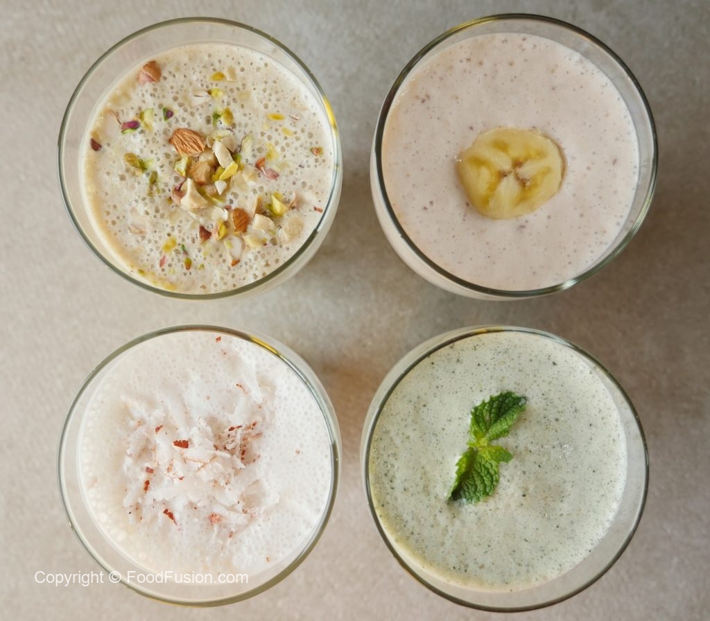 Grinder mein dahi,podina,zeera,namak,ice cubes,doodh aur shahad dal ker ache tarhan blend ker lein.