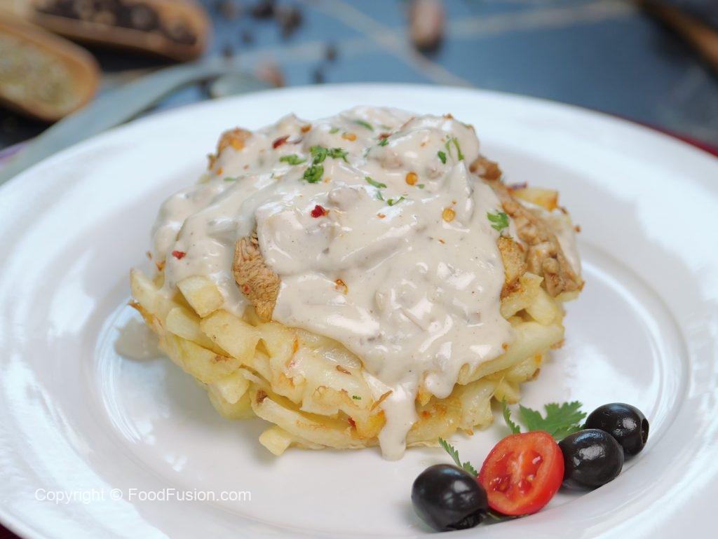 These Loaded Alfredo Fries are a great dish to nibble on with friends or family over a weekend night. The crunchy fries, creamy sauce, and a layer of Olper’s Cheese will leave you wanting more! #OlpersCheese #1Glass1Slice #ToastKaNayaFriend #BreakfastKiJaan #FoodFusion #HappyCookingToYou #DigitalAmmi