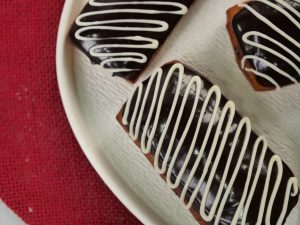 -Dip one side of donut in melted chocolate,garnish with white chocolate & serve!