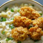 -Serving dish mein hara pyaz leaves aur popcorn chicken dal ker serve karein!