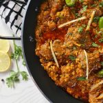 -Karahi mein cooking oil,mutton,pink salt aur makhan daal kar dhak dein,chulha on karein aur darmiyani ancch per makhan melt hone dein phir achi tarah mix kar ke high flame par 4-5 minutes tak paka lein.