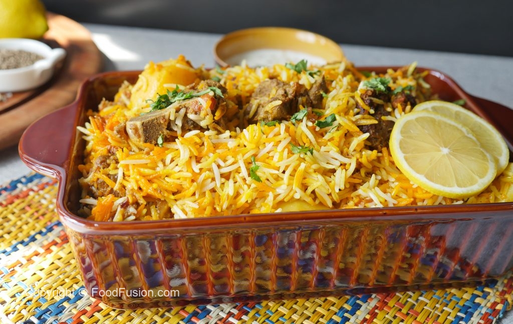 Add dissolve food color,fried onion,cover & steam cook on low flame for 10-12 minutes & serve!