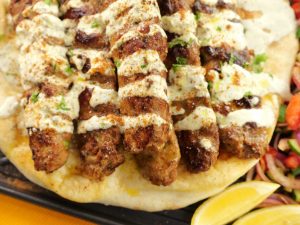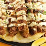 -On toasted naan,place kababs,drizzle prepared sauce & sprinkle chaat masala.