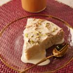 Slowly pour prepared milk malai syrup over the top of the cake,filling holes.