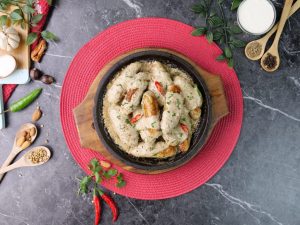 -Add onion rings,green chillies,kababs & pour creamy gravy.