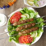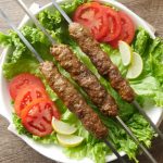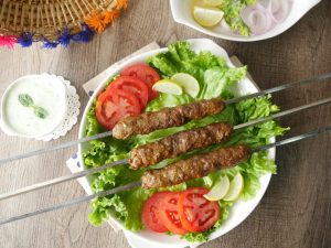Grease hands with oil,take a mixture and make kababs of equal sizes on metal skewers. (makes 10-12).