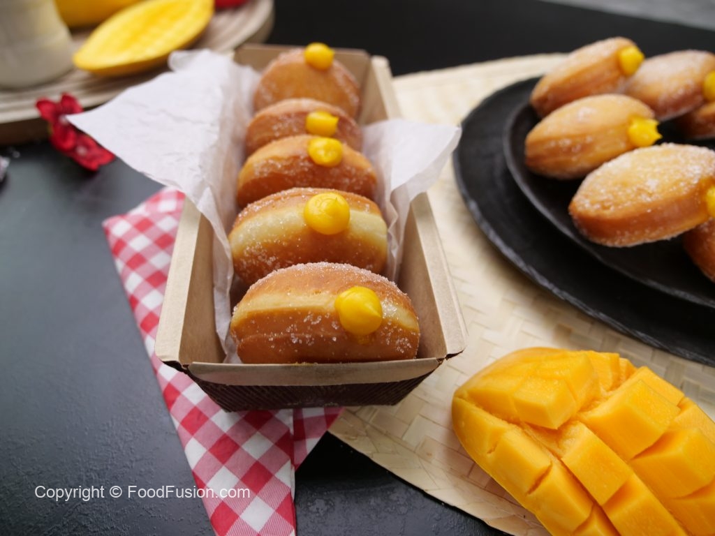 -Fit a piping bag,fill with prepared mango curd into each donut & serve! (Makes 10-12)