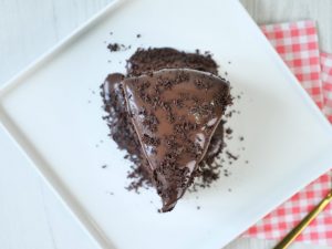 -Pour prepared chocolate ganache & dark chocolate on the slice.