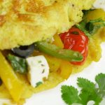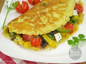 Sprinkle dried oregano and fill stir fried vegetable over half of each omelette.