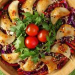 -In a serving bowladd prepared salad,fried dumplings & garnish with fresh coriander,cherry tomatoes, chilli oil,sesame seeds & serve!
