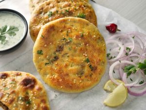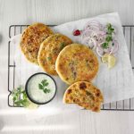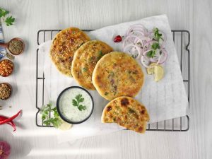 -Apply butter,sprinkle fresh coriander & serve with raita.