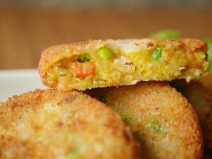 Take a mixture and make 8-10 kebabs,dip into prepared batter then coat in bread crumbs.