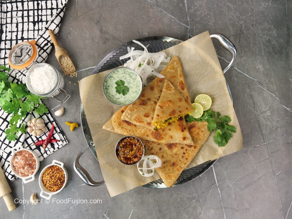 -Heat griddle & fry paratha on medium flame from both sides with clarified butter (makes 5).