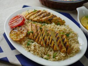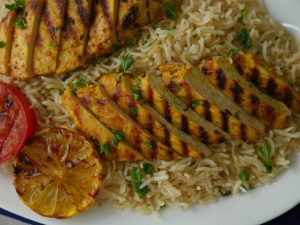 Grinder mein hara pyaz ka safeed hissa,lehsan paste,zeera powder,haldee powder,namak,paprika powder,lal mirch powder,lemon juice aur olive oil dal ker ache tarhan grind ker lein.