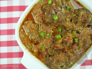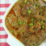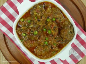 Add 2 cups of water and mix. Cover and cook until meat is tender on low flame. (You can additional water to tenderize meat)