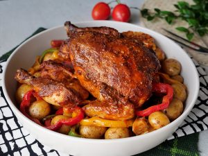 -Bake in preheated oven at 160C for 25 minutes (both grills on).