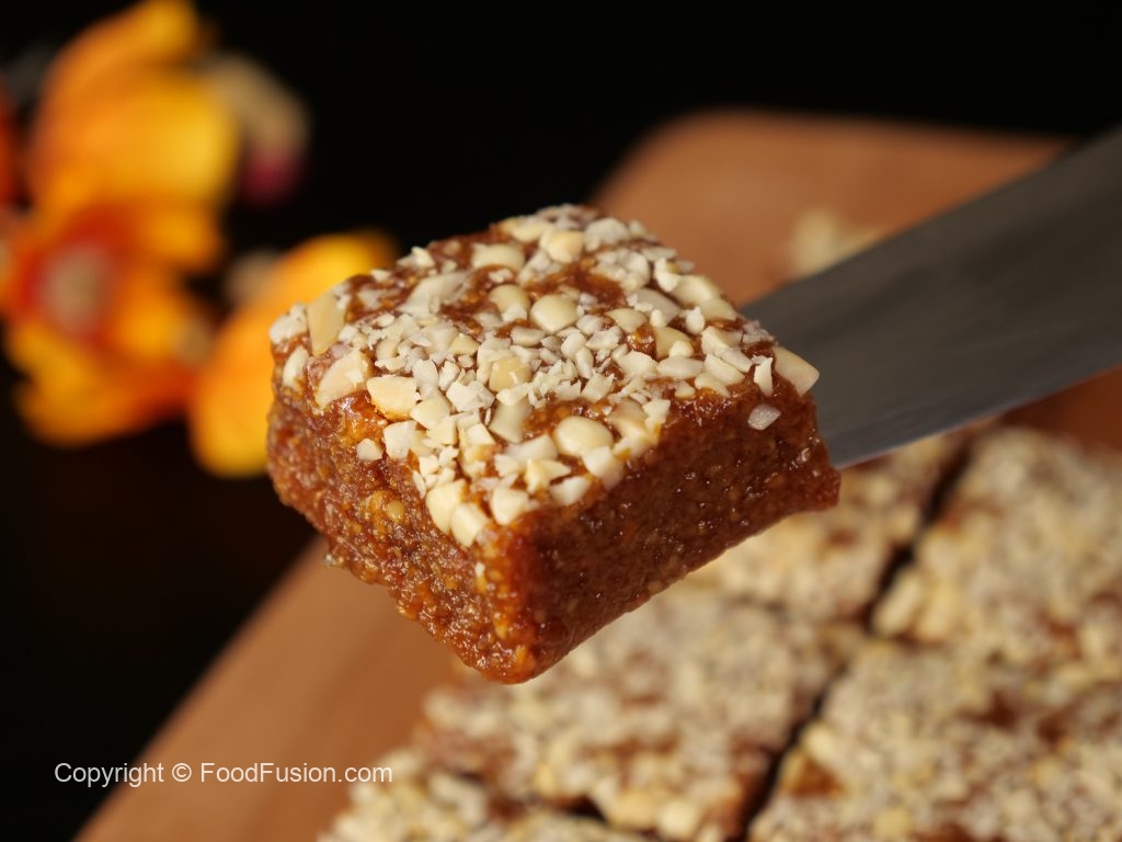 -Greased mold mein mong phalli aur tayyar barfi dal dein aur evenly pheela lein.