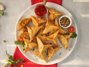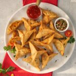 -Add prepared filling,apply water,fold & seal corners to make a samosa (makes 25-30).