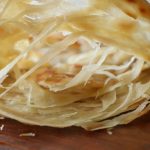 Ek part lein aur ball bana ker maida chirak dein aur rolling pin ki madad sa thin bail lein.