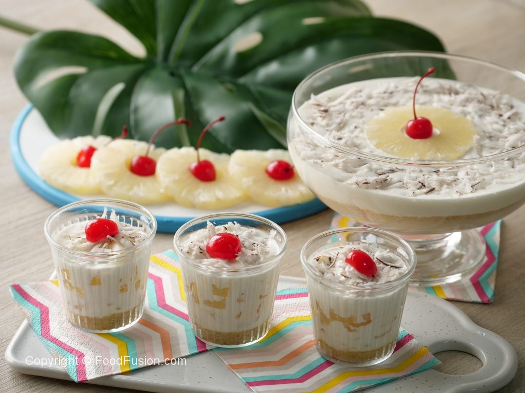 Fresh coconut sprinkle ker ka cherry rakh dein.