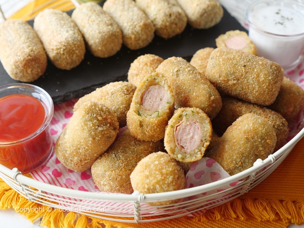 -Ab fried sausage rakh dein aur aloo mixture sa cover ker lein & ek jaisay sizes ka croquettes tayyar ker lein.