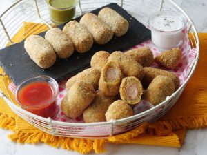 -Now place fried sausage,cover properly with potato mixture & make croquettes of equal sizes.