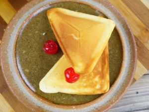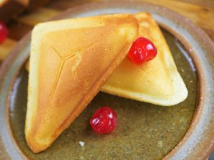 For sandwich cakes, grease sandwich maker, pour batter and give it 4-5 min.