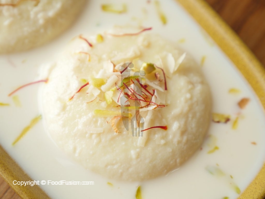 Heat milk and add the balls one by one,cover and cook on low flame for 10 minutes.Do not stir or use any spoon.