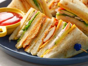 -Add chicken filling,cheddar & mozzarella cheese & fold both sides,add cheddar & mozzarella cheese,cover & cook on low flame until cheese melts (makes 2 omelets).