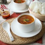 -In a serving bowl,add hot & sour soup & garnish with spring onion leaves,chilli oil & serve!