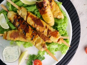 -Grease hand with oil,take a small quantity of mixture (100g) & skew on wooden skewers.