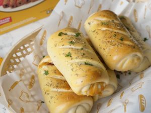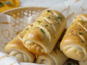 Brush it on pizza rolls & sprinkle dried oregano (makes 6).